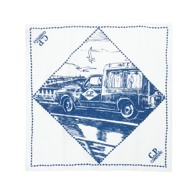 C.P. COMPANY PRINTED MUSLIN GRAPHIC BANDANA (GAUZE WHITE) バンダナは軽量なコットンモスリン製で、プリントされたグラフィックが特徴です。 ------------------------------------------------ SIZE 59 × 59cm MADE IN ITALY ------------------------------------------------