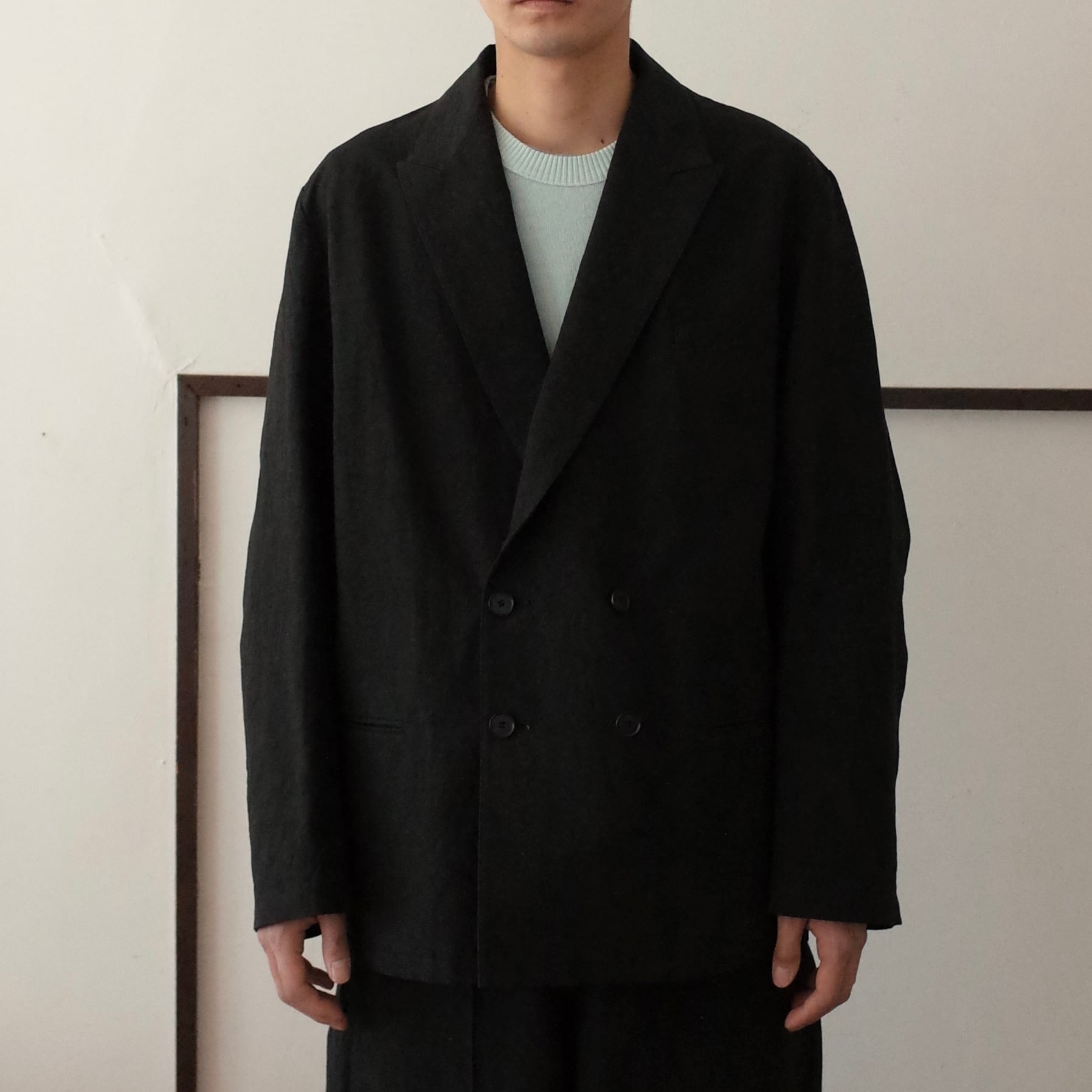 SO ORIGINAL COTTON LINEN DOUBLE BREASTED JACKET (BLACK)