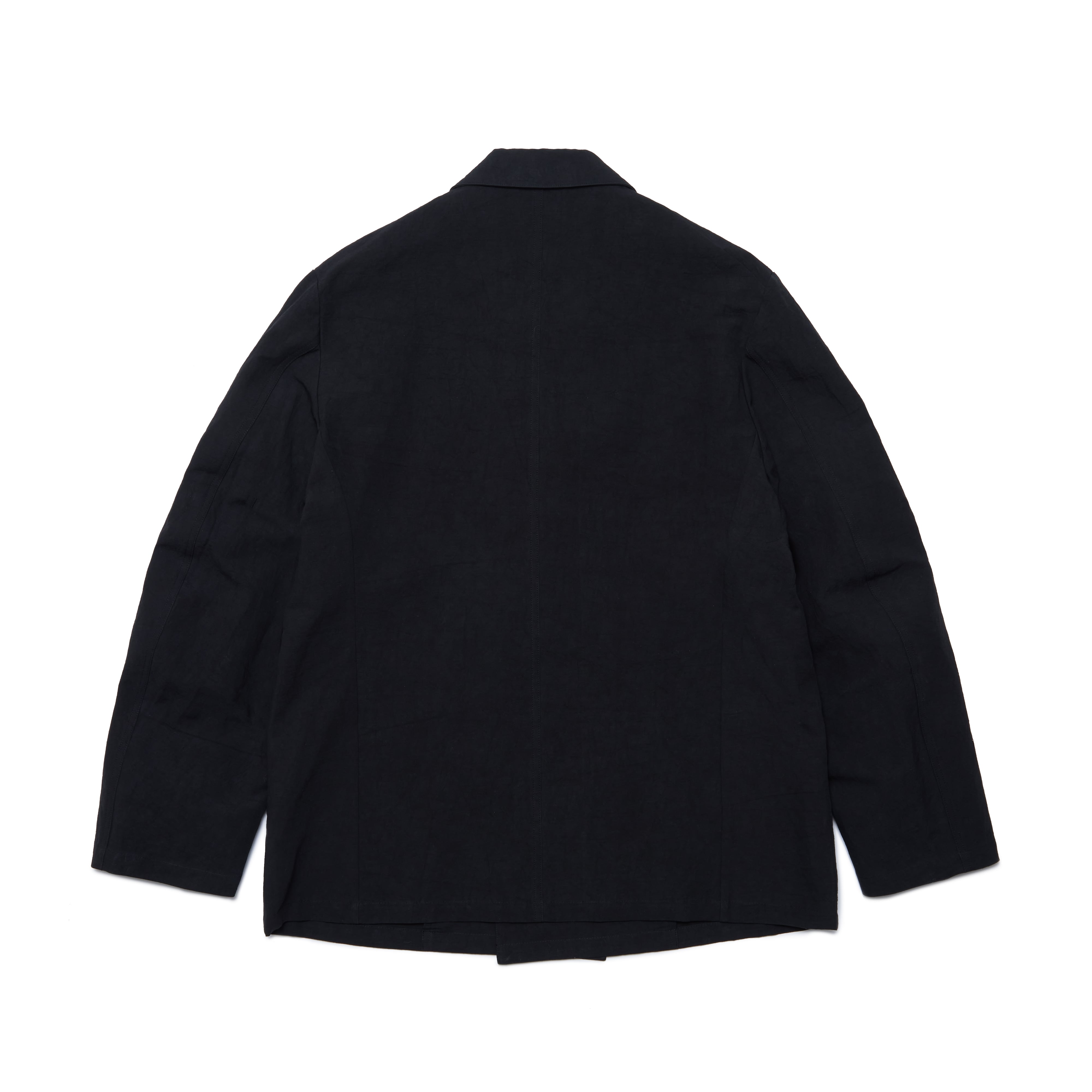 袖口の本切羽や背面ベンツなどのディテールをあえて省き、カジュアルに羽織れる仕様にしています。