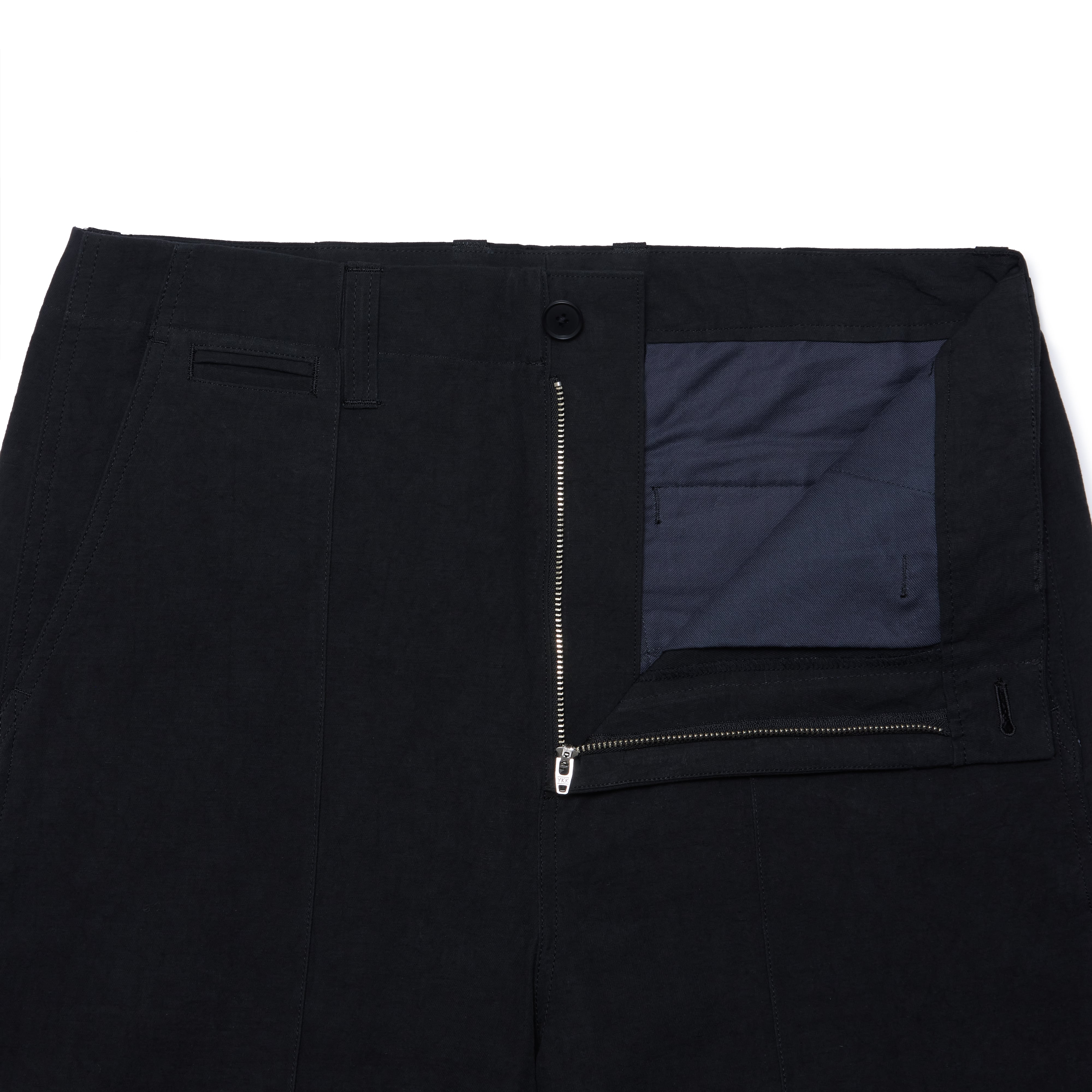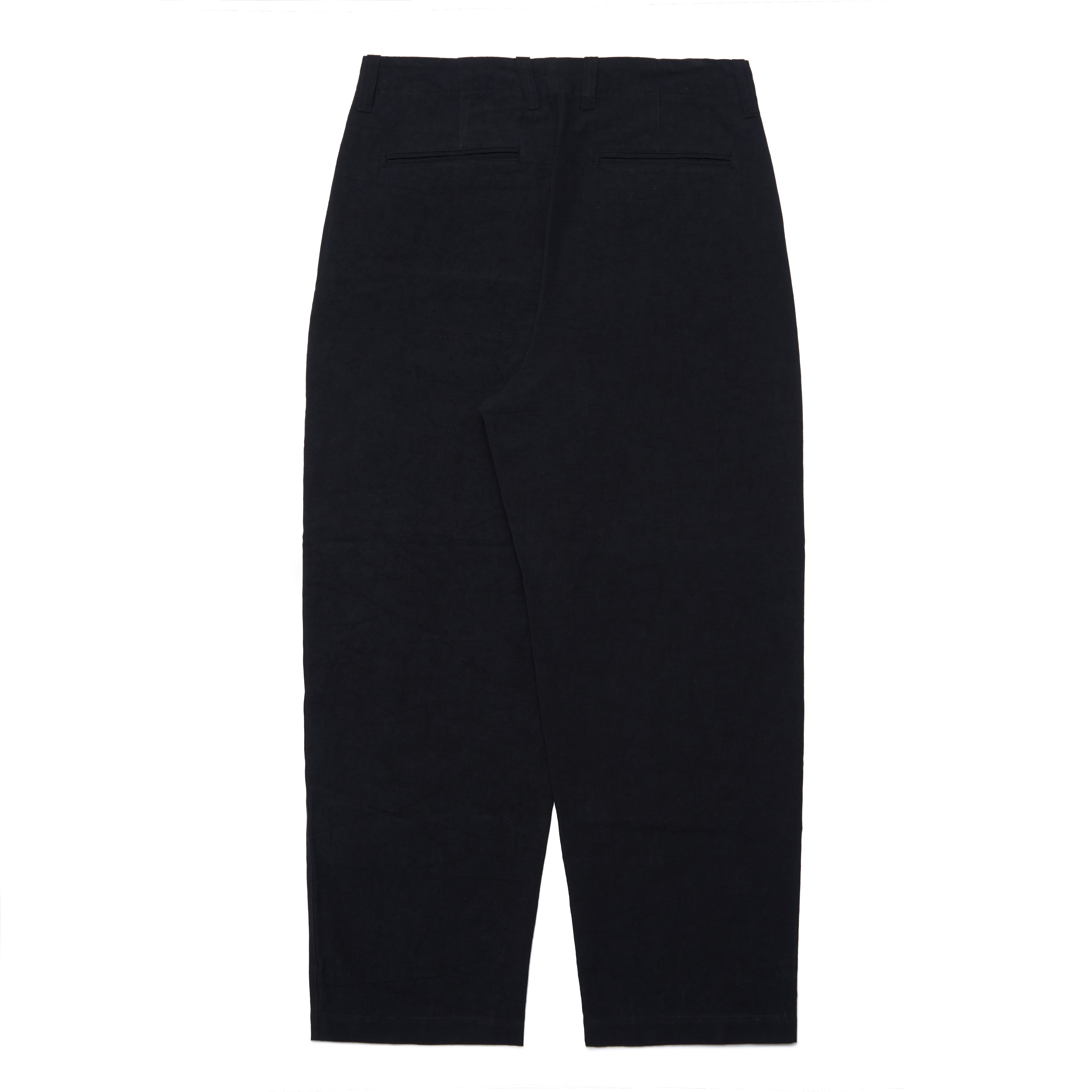 腰回りにゆとりを持たせながら、裾に向かって緩やかにテーパードしており、足元はすっきりとした印象です。